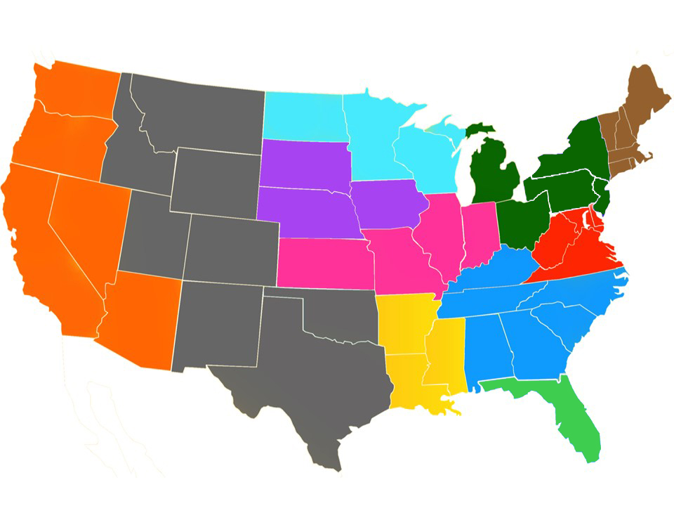 Ohio, Pennsylvania, New York, New Jersey, Michigan.