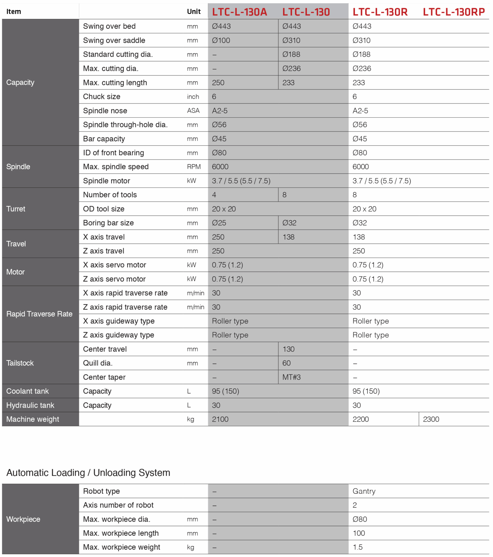 LTC-L 130A / LTC-L 130 / LTC-L 130R / LTC-L 130RP